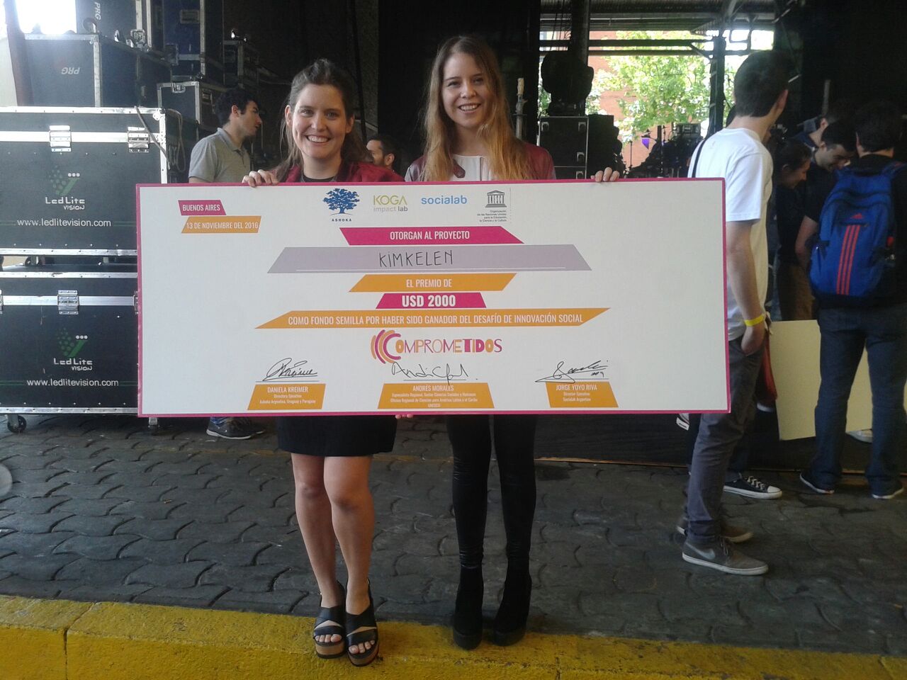 En la fase final del concurso, los 12 mejores equipos vivieron una semana de aceleración de sus proyectos en Buenos Aires, Argentina, y expusieron sus ideas frente a un jurado de expertos quienes escogieron a los cinco ganadores del programa, entre ellos la iniciativa ASombra, llamada en ese entonces Kimkelen.