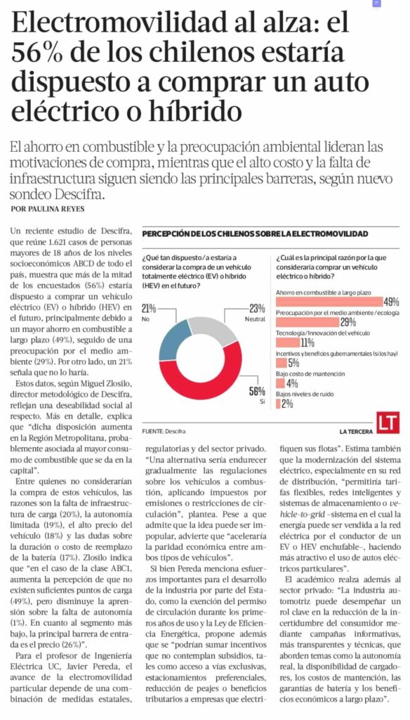 Electromovilidad al alza: el 56% de los chilenos estaría dispuesto a comprar un auto eléctrico o híbrido