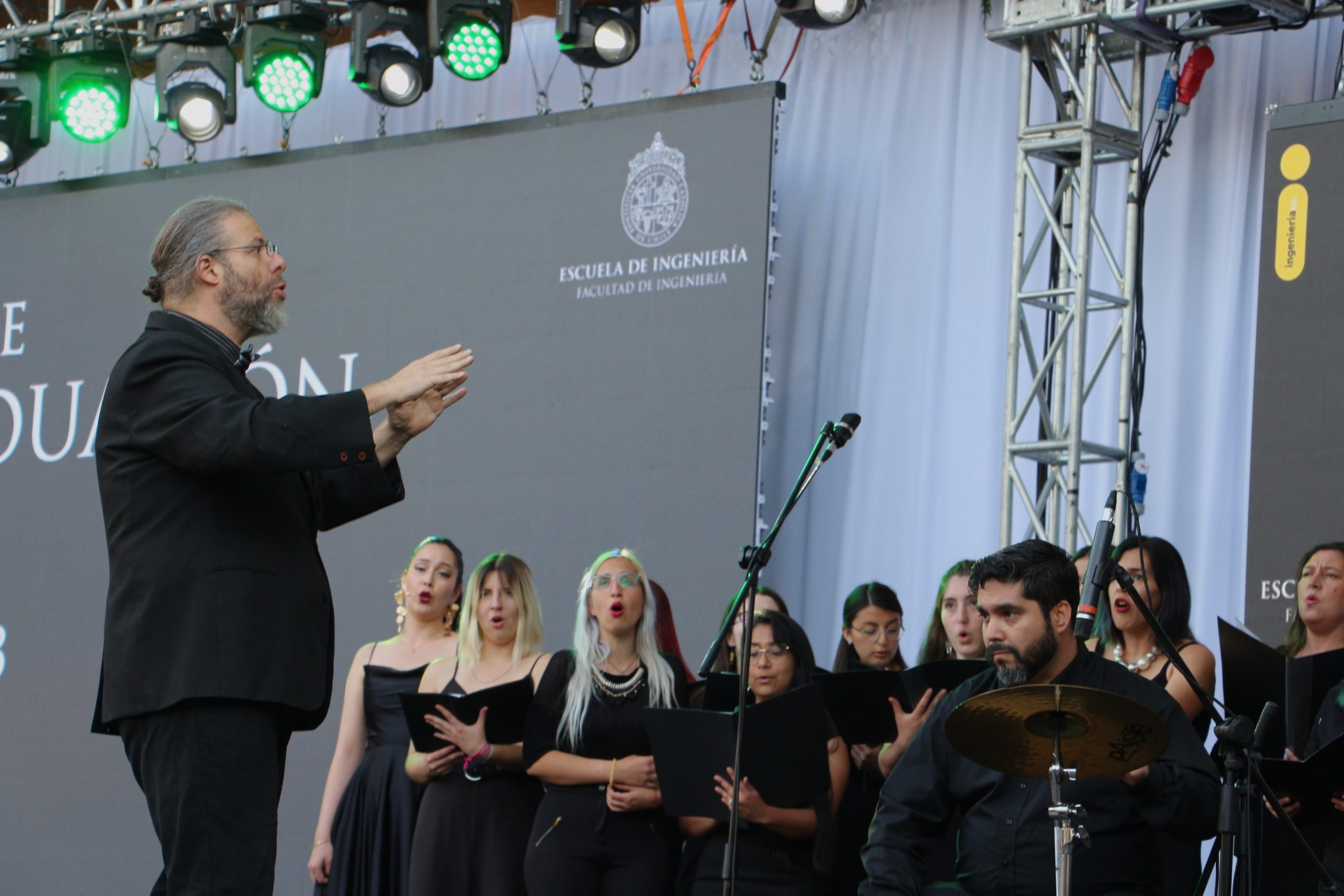 El intermedio musical lo realizó la soprano Vanessa Rojas, junto al Coro de la Escuela y el ensamble instrumental que interpretaron Gracias a la vida de Violeta Parra a cargo del profesor Eduardo Jahnke.