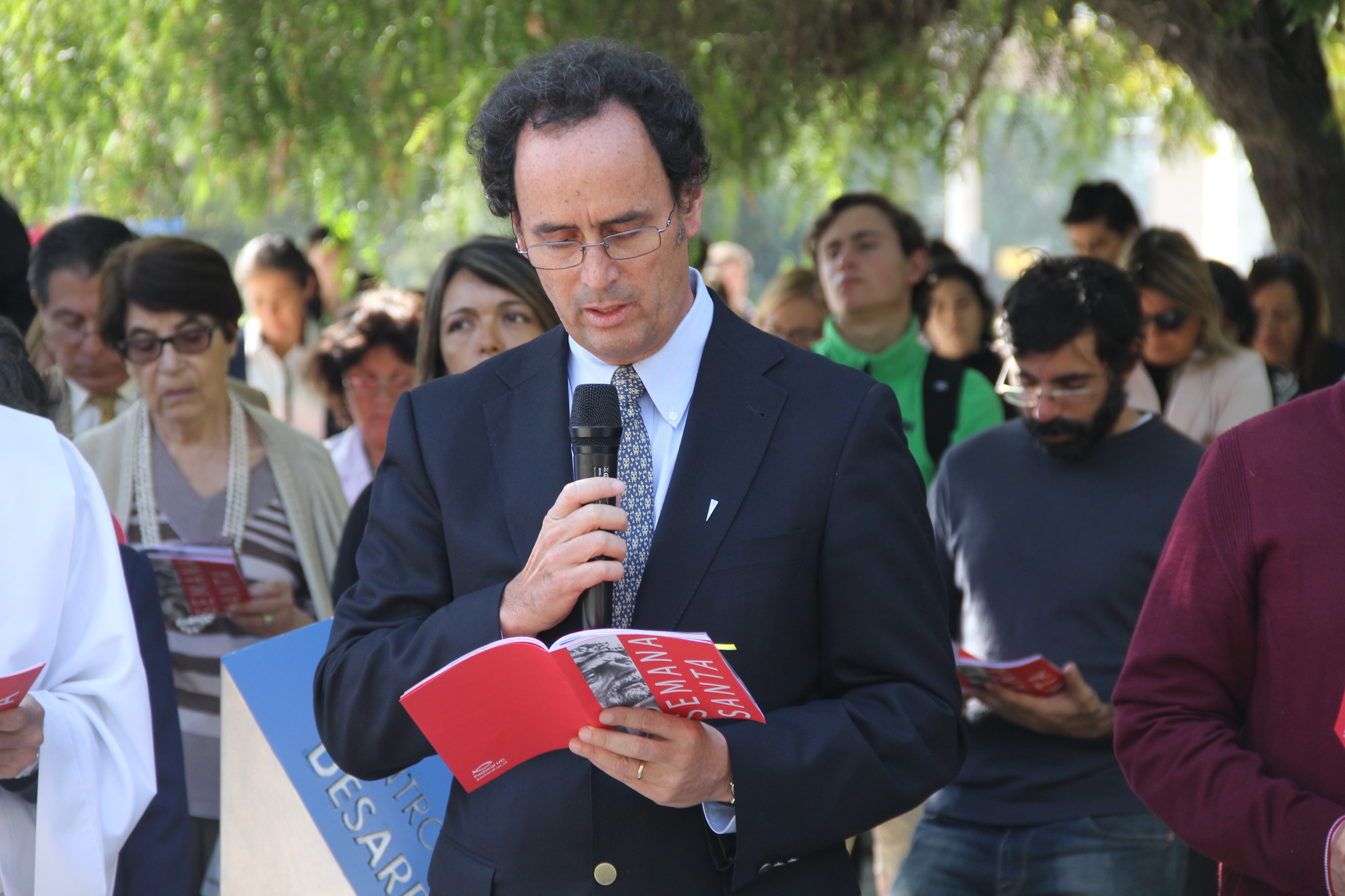 En la ocasión, participó Juan Carlos de la Llera, decano de Ingeniería UC, junto a funcionarios y estudiantes, quienes con signos, canciones y oración, acompañaron a Cristo en su sufrimiento en la cruz.