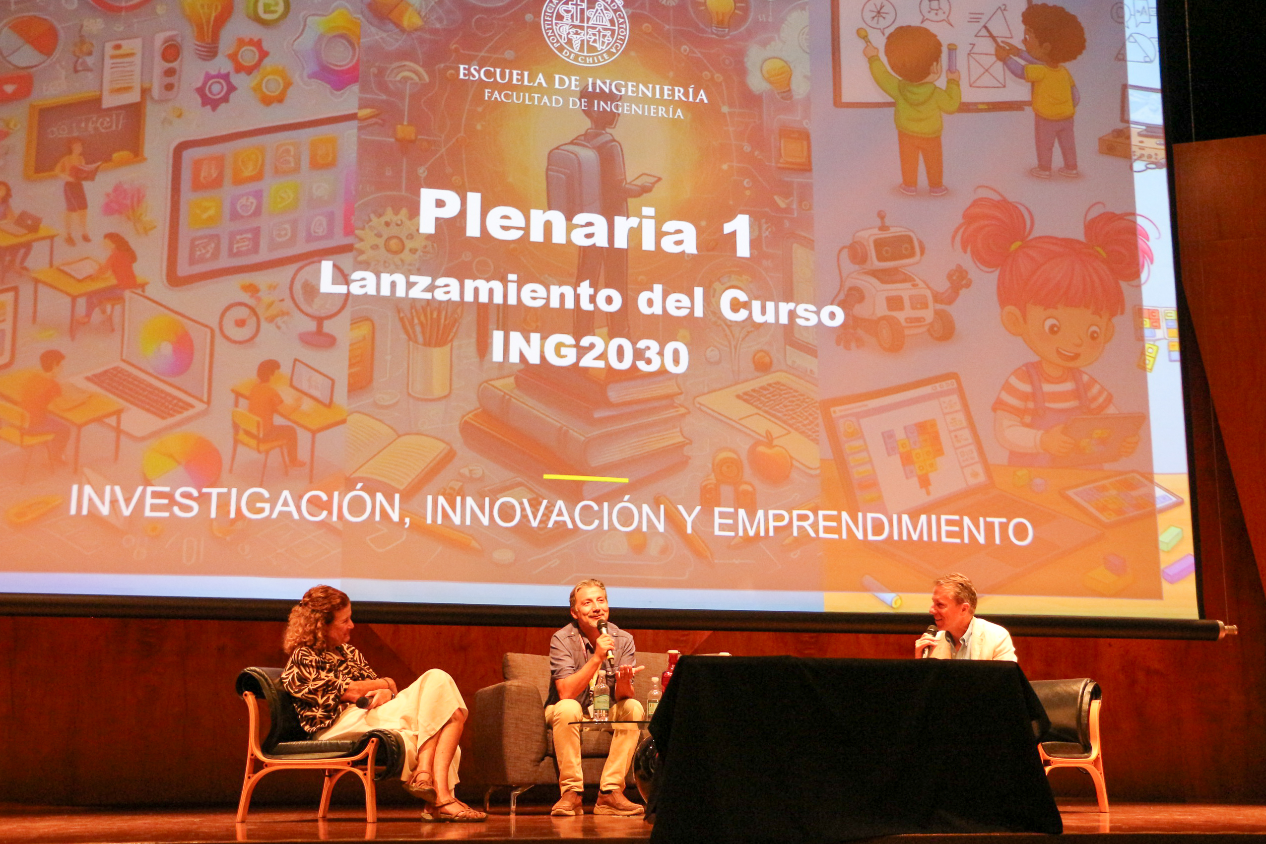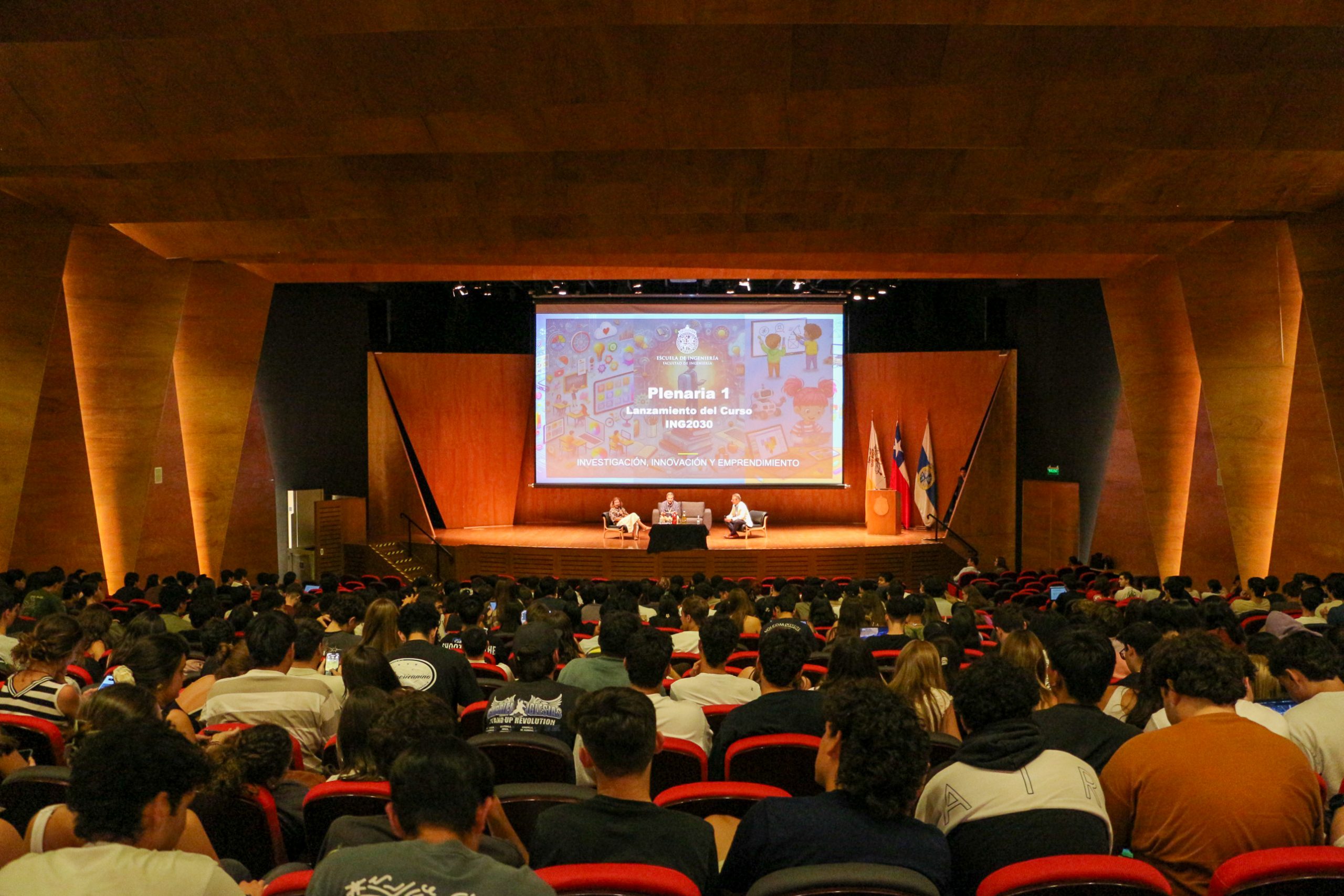 El curso Investigación, Innovación y Emprendimiento, o también conocido como ING2030, dio inicio a un nuevo semestre bajo la consigna «NNA: Niños, Niñas y Adolescentes. Innovaciones para impactar positivamente la niñez». Durante dos jornadas en el Auditorio Andrónico Luksic, los 480 estudiantes que están realizando el curso conocieron las experiencias de expertos en el área, quienes buscaron motivarlos a crear soluciones creativas.