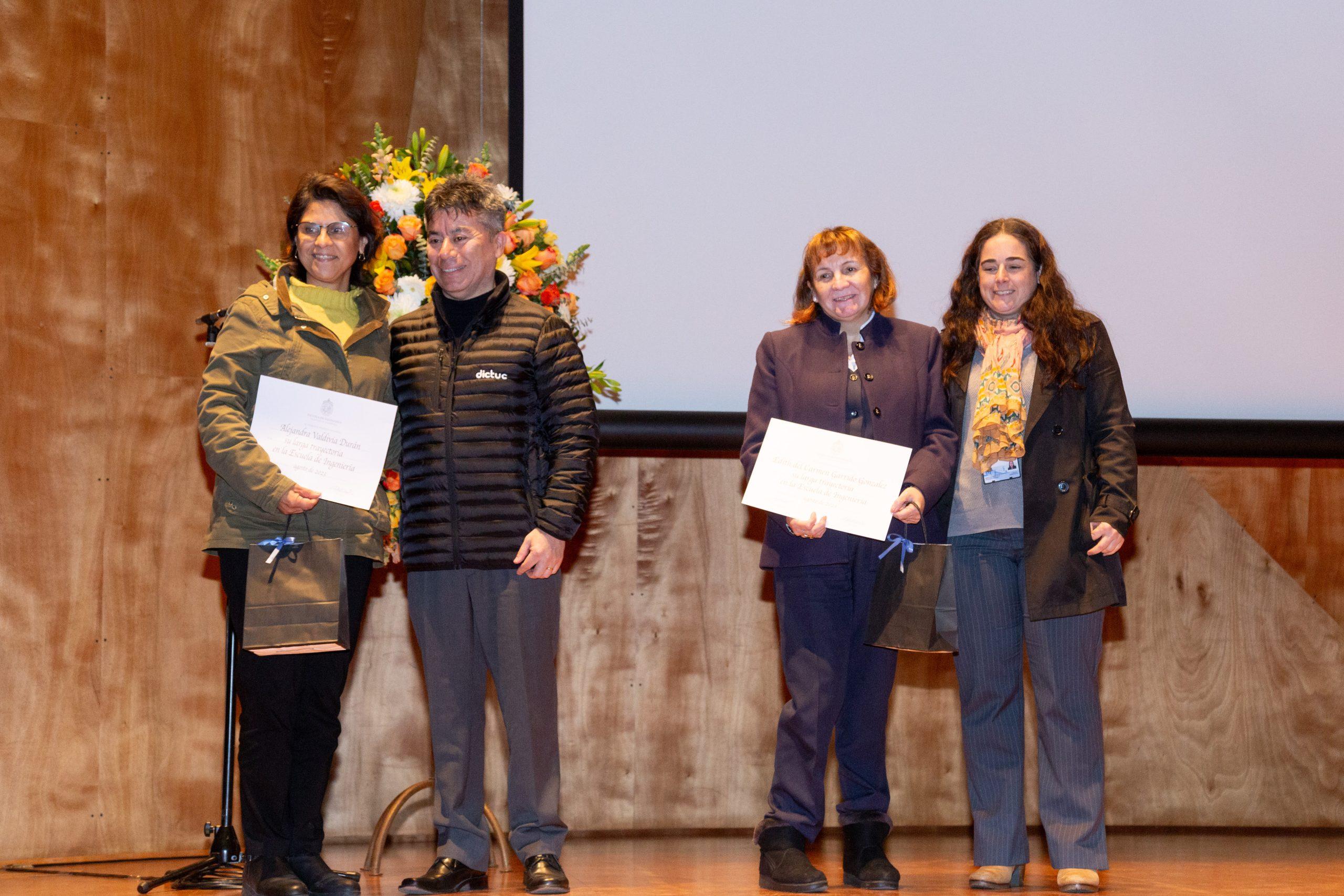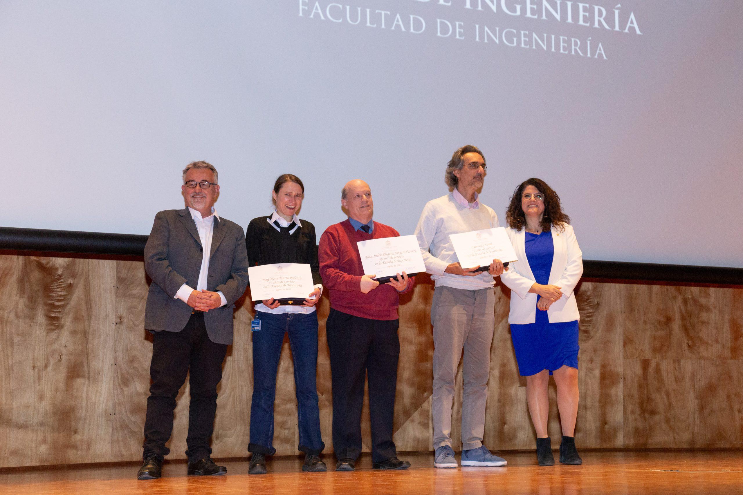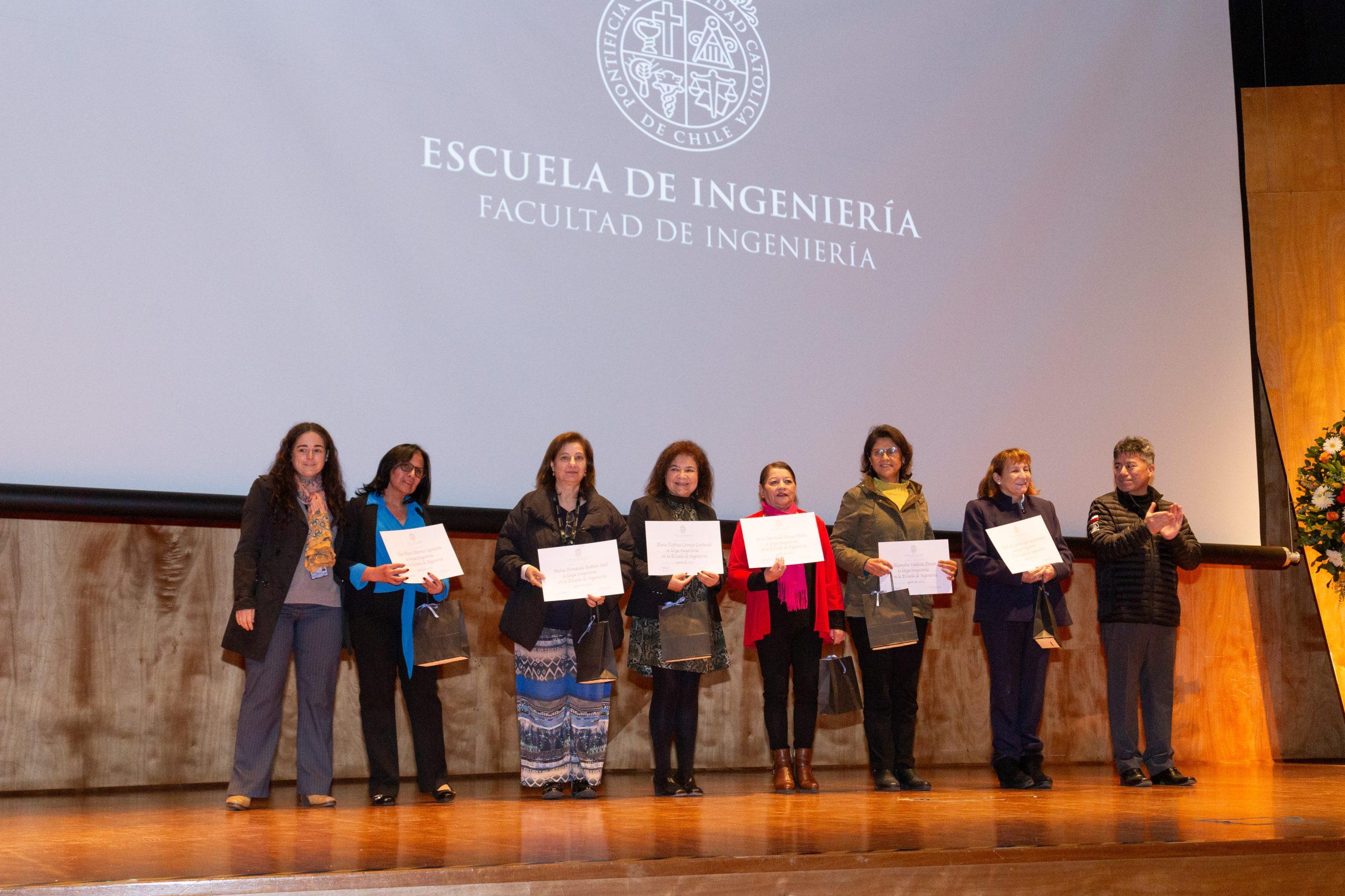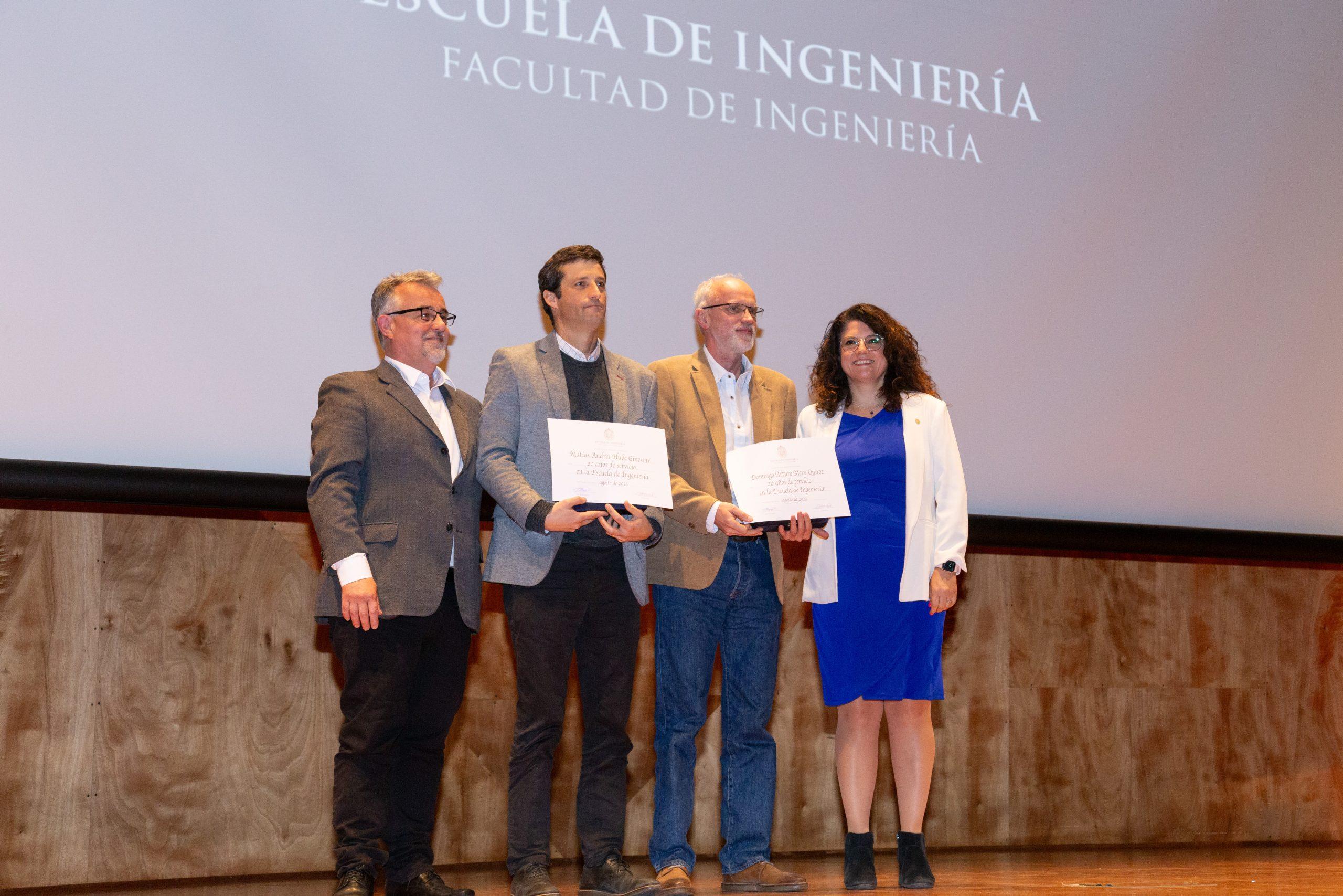 Como todos los años, también se entregaron reconocimientos: a académicos y funcionarios de la Escuela de Ingeniería y de Dictuc por años de servicio; a los académicos que han sido promovidos de categoría académica; profesores que obtuvieron el grado honorífico de profesor emérito y también premios especiales para académicos y estudiantes que han destacado en sus labores académicas o de extensión.