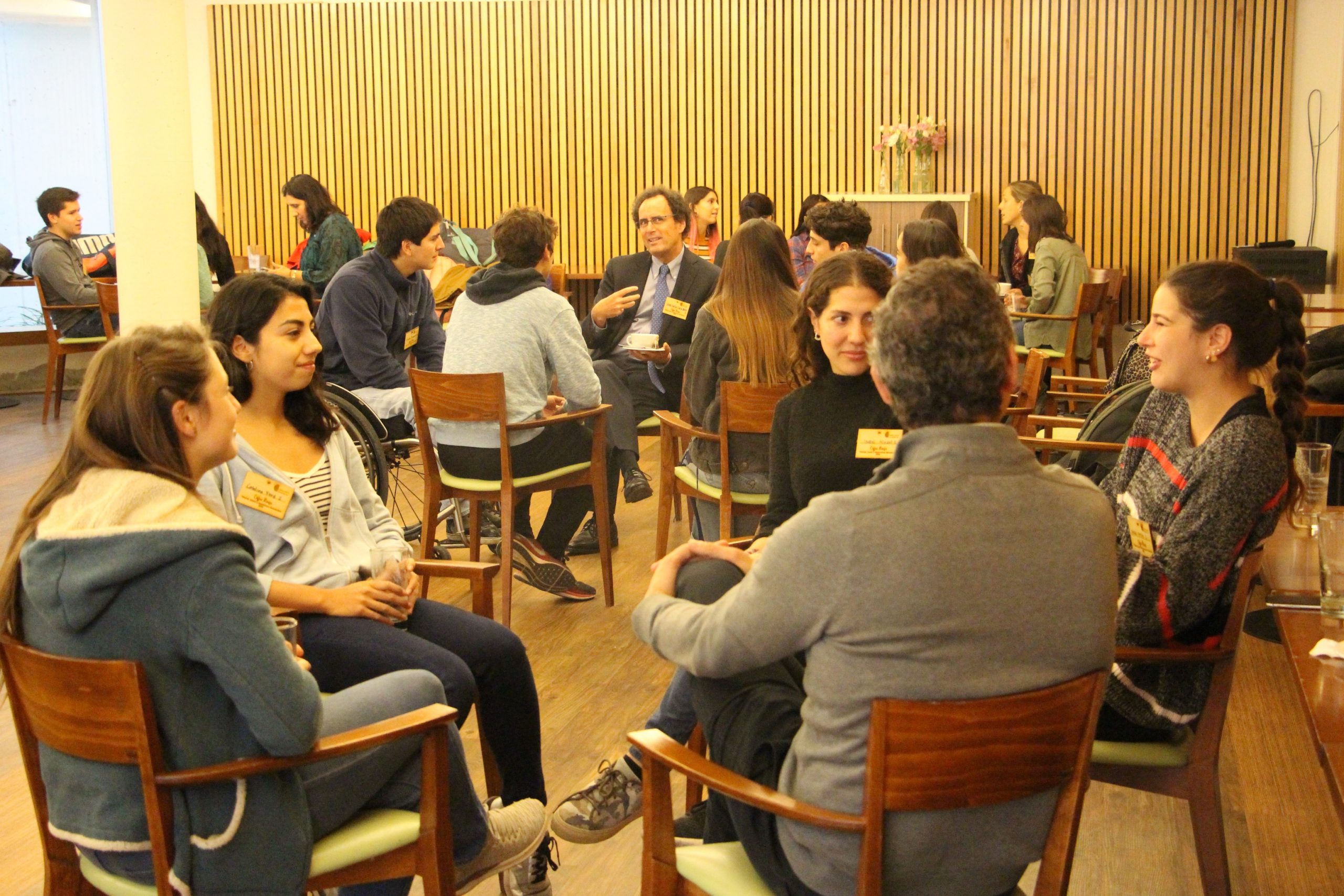 En esta oportunidad, el decano de la Facultad de Ingeniería, Juan Carlos de la Llera, junto a autoridades de la universidad y académicos se reunieron en un Coffee House que tuvo como temática la maternidad y paternidad durante los años de universidad, donde los estudiantes pudieron compartir sus experiencias con profesores que también se encontraron en esa situación durante sus estudios universitarios.
