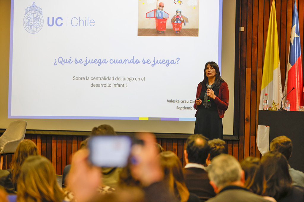 El Festival de Juego y Aprendizaje en la UC fue gratuito y abierto a toda la comunidad, convocando a estudiantes, docentes, representantes de instituciones educativas, directivos, sostenedores e investigadores en educación y metodologías lúdicas. Contó con la charla “¿Qué se juega cuando se juega? Sobre la centralidad del juego en el desarrollo infantil” dirigida por Valeska Grau, académica de la Escuela de Psicología y mediadora estudiantil de la Oficina Ombuds.
