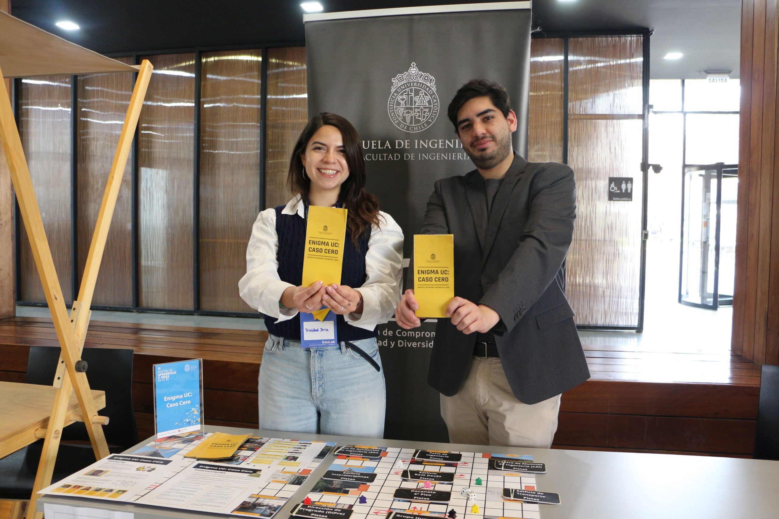 Enigma UC: Caso Cero es un juego de mesas creado para facilitar el aprendizaje de los novatos y novatas que ingresan por la vía de admisión NACE, para que puedan aprender de una formar más entretenida y colaborativa sobre la cultura interna de la Escuela de Ingeniería UC.