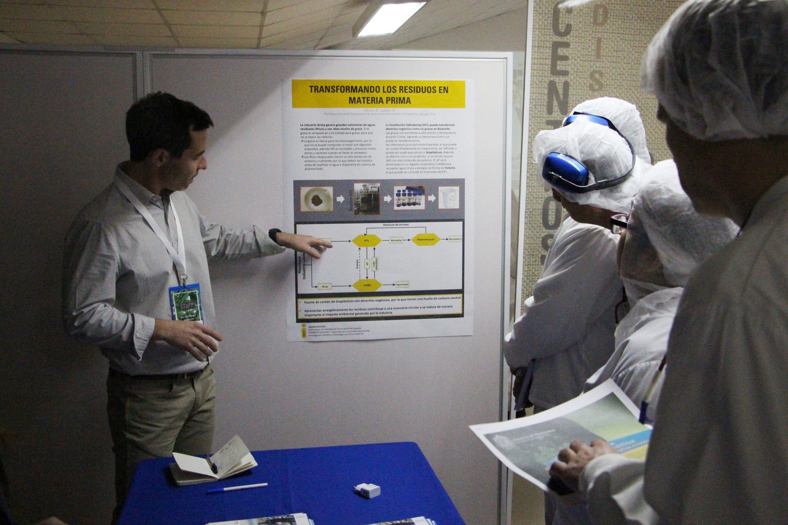 También participó en la instancia, el profesor del Departamento de Ingeniería Hidráulica y Ambiental, Rodrigo Labatut, que estuvo junto a una de sus estudiante de postgrado, Daniela Cabrera, presentando dos proyectos para reutilizar los desechos que Nestlé genera (lodos y grasas), con el fin de transformarlos en nuevos productos que puedan ser reutilizados por la misma empresa.