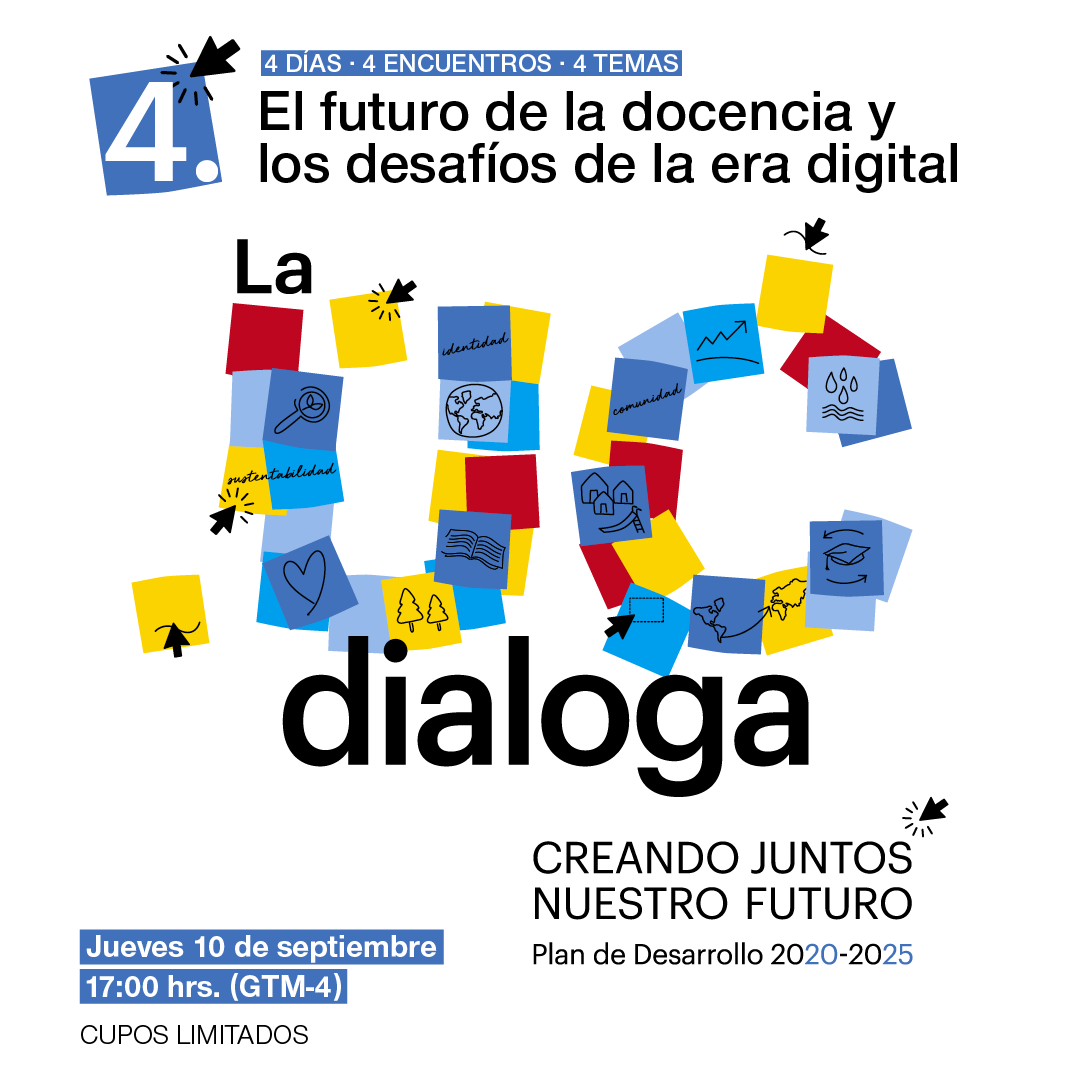 Entre el 7 y 10 de septiembre se desarrollará una nueva versión de La UC Dialoga. En esta ocasión, será en versión online y se abordarán los ejes que se están trabajando en la elaboración del Plan de Desarrollo UC 2020-2025.