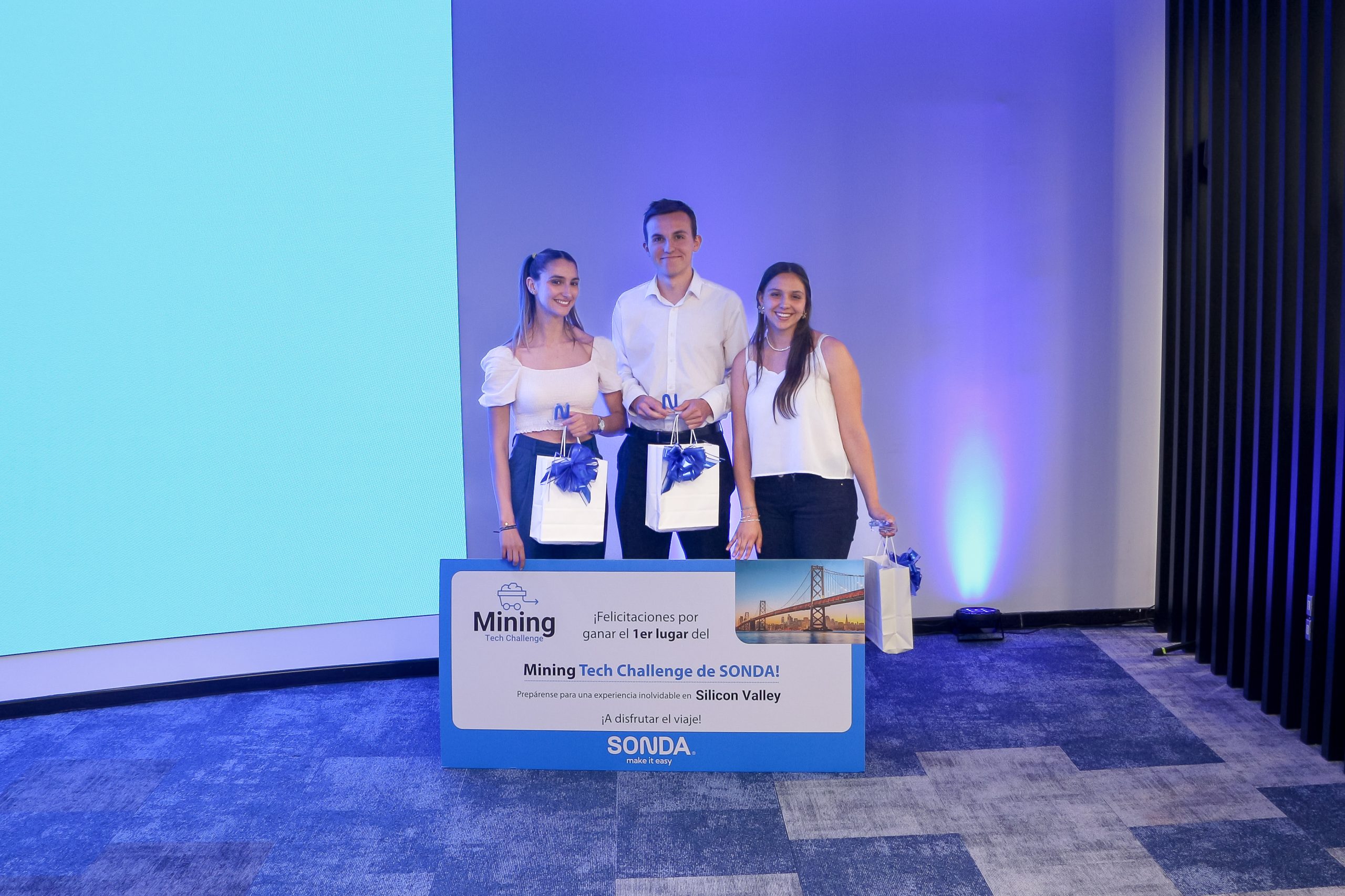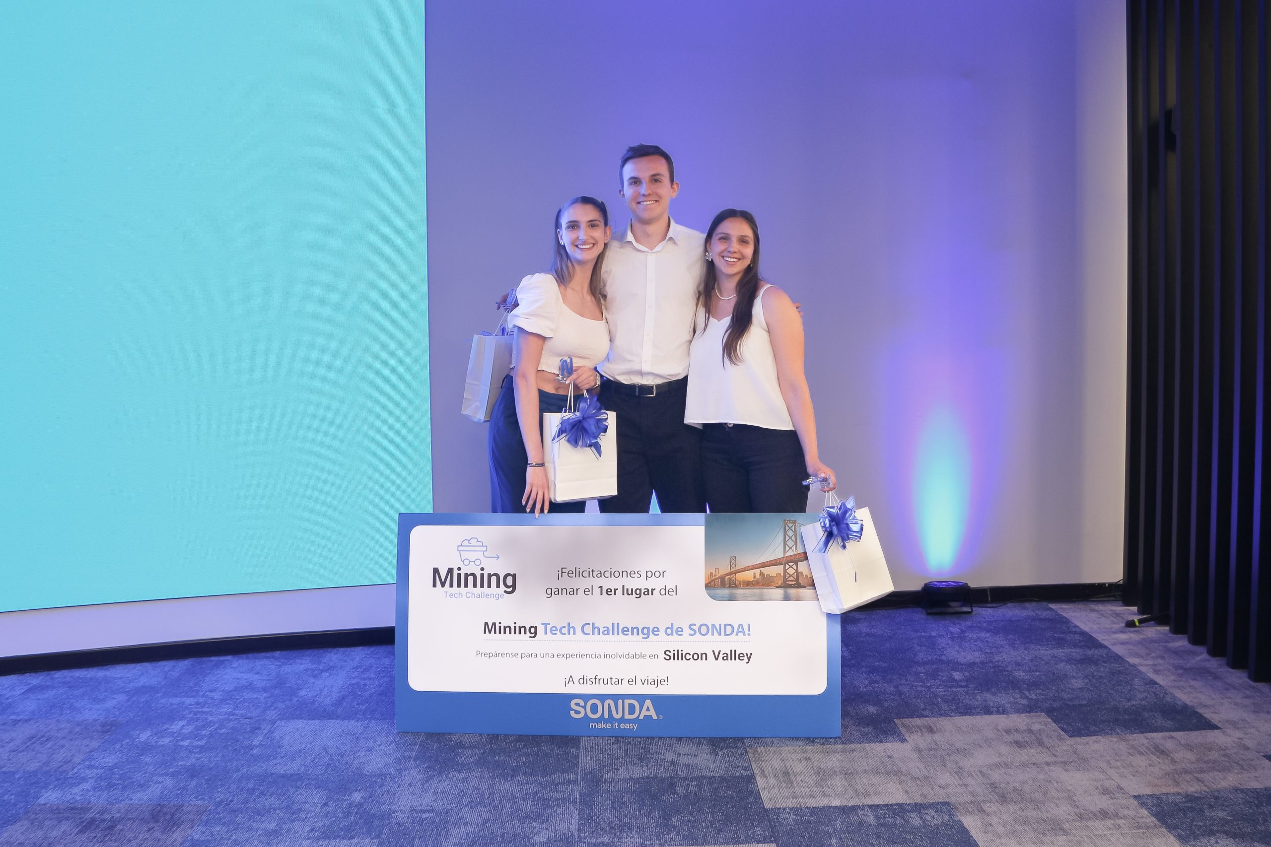 La solución que ganó el desafío fue desarrollada por un grupo de tres estudiantes, compuesto por Catalina Espinoza, Tomás Ferrer y Colomba Ríos, quienes fueron premiados con un viaje a Silicon Valley en Estados Unidos otorgado por SONDA.