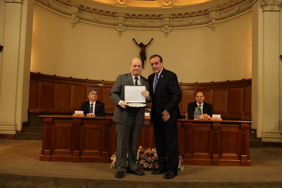 “Hoy día destacamos la entrega durante la vida académica de cada uno de ustedes. Queremos poner en valor, decir gracias, reconocer el aporte en docencia, en investigación, formando escuelas y estudiantes”, expresó el rector Ignacio Sánchez y agregó: “también es un privilegio ser el rector que entrega este homenaje, porque hay un reconocimiento que viene de la cabeza, pero también es un recuerdo que viene en el corazón”.